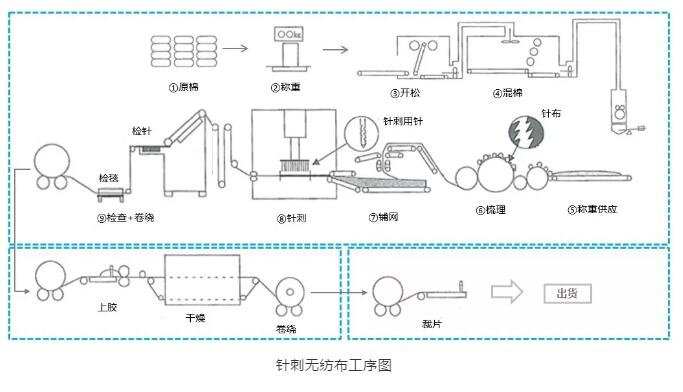 針刺無紡布的生產(chǎn)流程介紹,附帶工藝流程示意圖