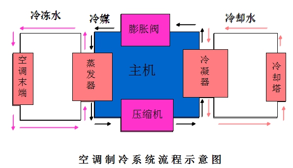 水冷機組空調系統的主要設備: